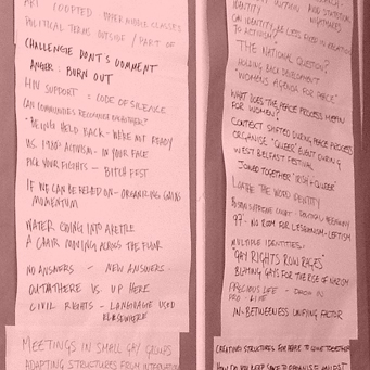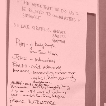 School of Echoes is a long-term project designed to activate pedagogical spaces for development and dissemination of theory and practice in Militant Sound Investigation. The long-term goal of this project is the establishment of a cultural action institute for organizers, artists, and youth. Meanwhile, at the current phase in the project, Ultra-red members have sought to infiltrate art spaces and schools to explore the theoretical and practical traditions informing our notion of Militant Sound Investigation. In addition to classroom settings, Ultra-red has convened public meetings, titled "Encuentros," bringing together local artists, organizers and activists to explore how sound produces specific forms of knowledge that contribute to and challenge organizing strategies. Drawing on historical precedents such as Popular Education, Militant Inquiry, Participatory Action Research, as well as Feminist and anti-colonial learning, School of Echoes imagines a practice of knowledge production that can stimulate an exchange between organizing and art.